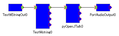 まずTestWStringOutですが,1つのアウトポート(TimedWString型)を持っており,適当な文字列を出力します.